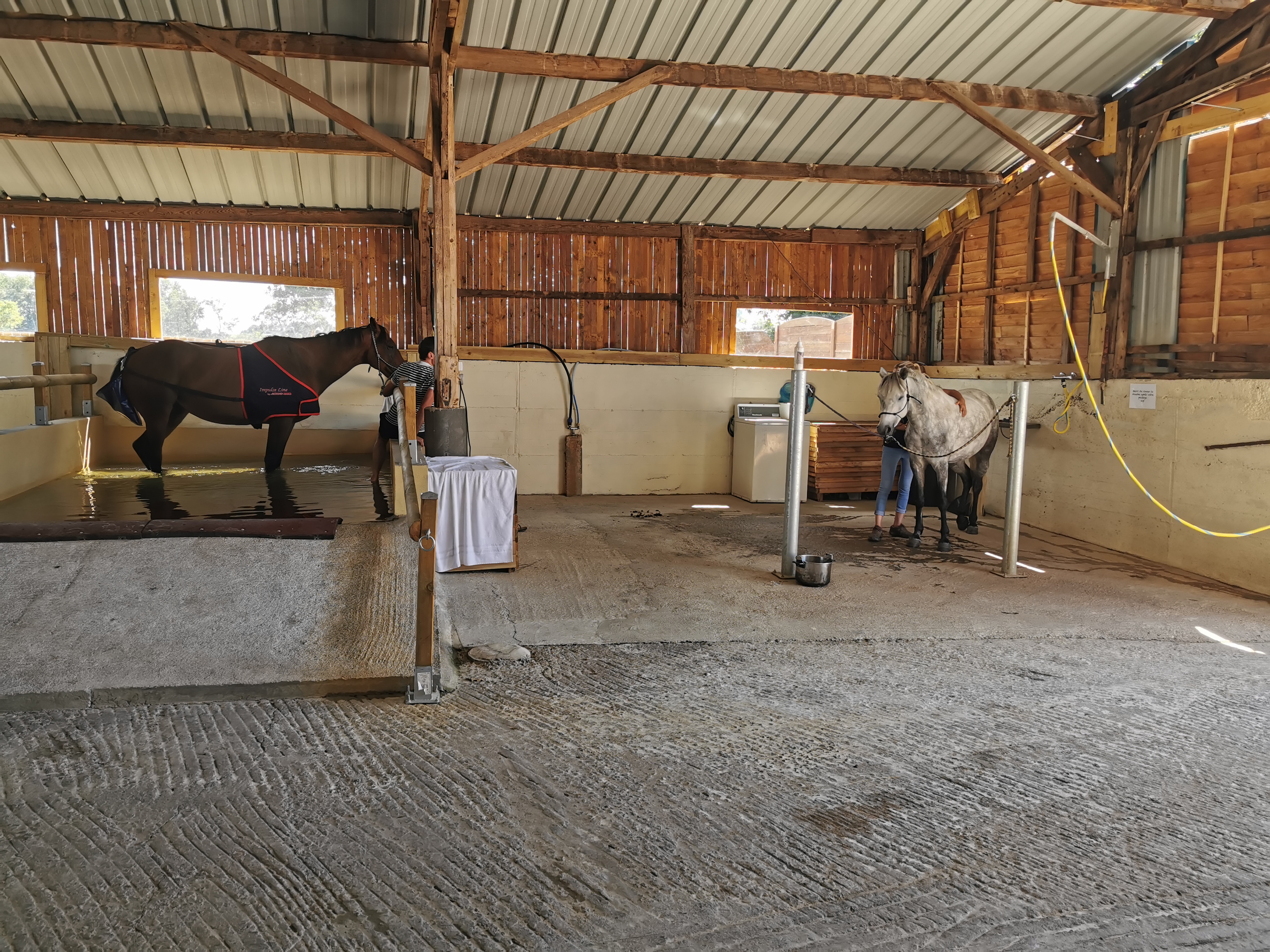 Nous avons visiter les structures dans le cadre d'une semaine découverte avec le lycée et c'était génial j'ai beaucoup aimé, un accueil chaleureux, des explications claires et intéressantes, un bel étalon qui nous a montrer le bain moussant ! De quoi donner envie d'y retourner avec son cheval et son maillot de bain 😊